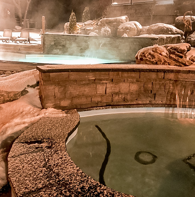 The Inn is situated close to Alton, which has an artistic vibe and is full of boutique shops.  Within Alton Mills Arts Centre you will find shops, studios and galleries and worth the wintery hike through the onsite trails leading from the Inn to the Mill.  Grab a warm beverage; coffee, tea, or hot chocolate and tour around the mill taking in the local artisan flare.  When you return, head to the outdoor spring baths soaking as the snow falls around you and if you dare take the plummet into the polar plunge pool for those health benefits of boosting the immune system, reduction in inflammation, and the release of endorphins!  Happy hormones released and you haven’t even had dinner yet! Since you have full access to the amenities complimentary with your stay, take advantage of the spa, sauna and the steam room to feel completely restored and refreshed.  Continue to rotate between the areas for a couple of hours before showering and freshening up for dinner!