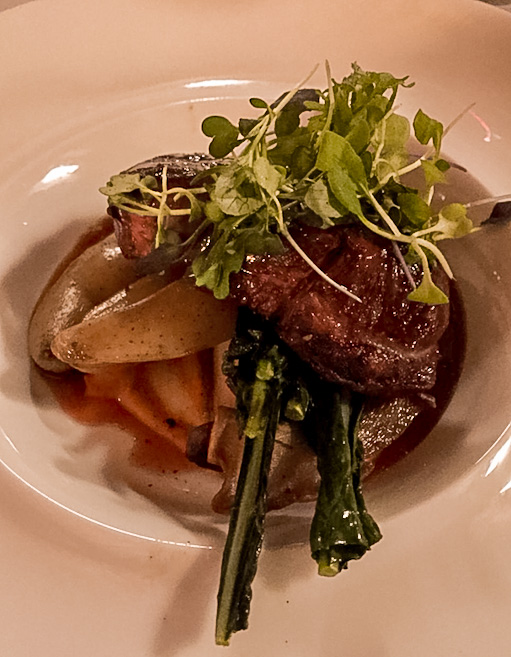 My recommendations for dinner, of course you will want to hear it!  As the menu changes seasonally this may not be on the menu, but really you can’t go wrong with any choice.  To start the Scallop Mousseline which is surrounded by brussels sprouts and bacon lardons over a red cabbage puree paired with a refreshing white wine to bring out the combinations of flavours.  The main – hands down is the chestnut crushed Venison Loin combined with roasted fig, maple glazed brussels sprouts, butternut squash puree, cranberry gastrique and Chianti jus – is your mouth watering yet?!  The venison will melt in your mouth between sips of a boldly paired Cabernet.  To round out your evening, 2 oz of 20 year old Taylor Fladgate (Port) with the white chocolate calvados mousse, caramel apple centre with caramel glaze and brown sugar crumble.  The richness of the Port along the sweet caramel will leave you lingering for a while enjoying the view.
