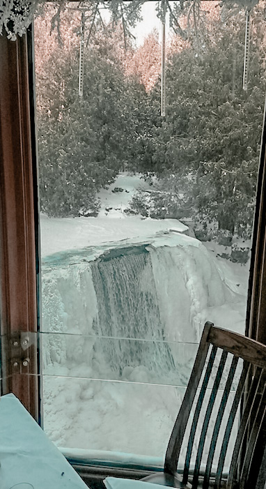 I love all things food and the Headwaters Restaurant does not disappoint!  Located in the main mill of the Inn and overlooking the picturesque millpond and falls you have the perfect recipe for a truly extraordinary experience for all your senses.  In advance of your stay and if you book a package that includes dinner, make a reservation immediately for the restaurant and request to sit in the ‘pod’ where you will have the breathtaking view of the falls while dining.  You will experience impeccable service and a menu filled with an assortment of seasonal dishes which will leave you satiated.  With an impressive wine list, why not have the Inn pair your dishes with wine.  Sip, bite and repeat, but don’t forget to leave room for dessert.  With the package, dinner is included and only alcohol is at an additional cost.  You can make your way over earlier and enjoy a cocktail in the lounge where there is usually a local artist performing.  Enjoy as bubbles from your glass of prosecco dance to the rhythm of the music.