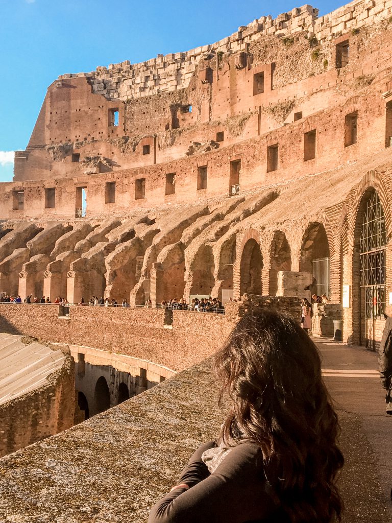 In traditional fashion for our European trips we resisted the urge to nap and headed out to explore. The goal is always to go as long as possible the first day to try to adjust to the time change. It was a sunny and warm winter day in Rome and we headed in the direction of the Colosseum which was approximately a 30-minute walk. Upon arriving there, we booked a tour to truly explore the interior and also take in the history. It truly is such an amazing sight to witness with your own eyes. Our tour also included access to the Roman Forum and Palatine Hill. We decided to take advantage of the pass, but toured the ancient ruins on our own instead of following the guide. This allowed us more freedom to enjoy the gardens and take in the remaining fragments of the villas and palaces. As dusk was approaching, the setting sun danced against the ancient ruins and Colosseum. It’s worth lingering around for this. On our way back toward the hotel, we stopped for an Aperitivo and some snacks. Honestly, we knew that based on the location, Bar Brasile, was going to be a bit of tourist trap. The Aperitivo and gelatos we got for the walk back were the most expensive we paid on this entire trip, but the outdoor patio and view was nice.