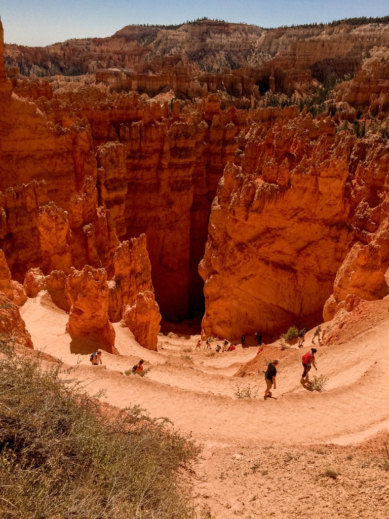 This hike gets the name the Queens Garden as it is said that one of the rock pillars at the viewpoint looks like Queen Victoria. I didn’t really see a resemblance. You can start this hike at either sunrise point or sunset point and will descend by switchbacks than climb your way back up amongst the hoodoos.