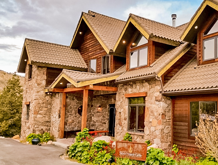 Stone Hearth Grille – D and I knew this trip wasn’t going to be fine dining, but I stumbled across this place and decided to book us all a reservation. My treat for the four of us, on our last night. It offers mountainside dining on an outdoor patio – the food, the views and the company – amazing! The perfect way to end this trip! Reservations recommended. D and I shared a nice bottle of wine pairing it with our local grass-fed steaks! There was even a cauliflower steak for Amy! We sat outdoors on the patio, listening to the sounds from the waterfall while watching the sun set against the mountains turning them from shades of pink to red as dusk fell around us.